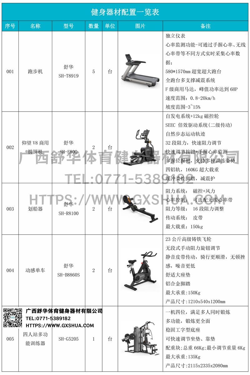 1.星空xkV9跑步机SH-T8919*5台-580*1570mm超宽超大跑台-跑感舒适,跑台整体安全稳定;全跑台多支撑减震平台,保证跑台超强支撑力,达到180kg支撑,满足专业健身房需求。F级商用马达-超强马达,AC 3.0HP 交流,峰值功率达到6HP,F级商用品质。速度范围达到0.8-20km/h;V9跑步机可实现跑台扬升功能,坡度范围-3~15%,满足客户不同的锻炼需求。