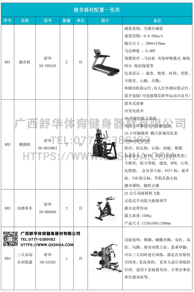 1.星空xkV9跑步机SH-T8919T*2台-V9+采用全跑台减震设计,为跑者提供舒适的落脚地感和稳定的跑步支撑,良好的缓冲防护,降低膝关节受伤风险。商用大跑台,为跑者提供从容奔跑空间,180kg承载力,580*1570纯跑台面积,满足专业健身需求。V9+采用F级商用马达,6HP峰值马力,20km/h最高速度,提供源源不断的动力。V9+内置健身直播软件,每周提供直播课程,内含大量专业线上健身点播课程,可为健身房不同人群提供多样化健身课程服务。