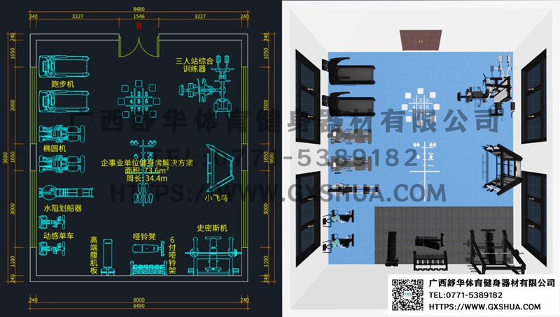 74m²企事业单位健身房