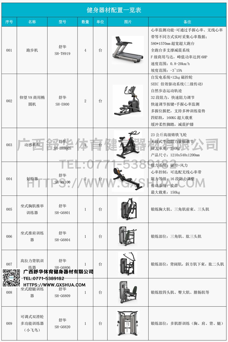 1.星空xkV9跑步机SH-T8919*4台-580*1570mm超宽超大跑台,全跑台多支撑减震平台,保证跑台超强支撑力,达到180kg支撑,满足专业健身房需求。F级商用马达-超强马达,AC 3.0HP 交流,峰值功率达到6HP,F级商用品质。速度范围达到0.8-20km/h;V9跑步机可实现跑台扬升功能,坡度范围-3~15%,满足客户不同的锻炼需求。