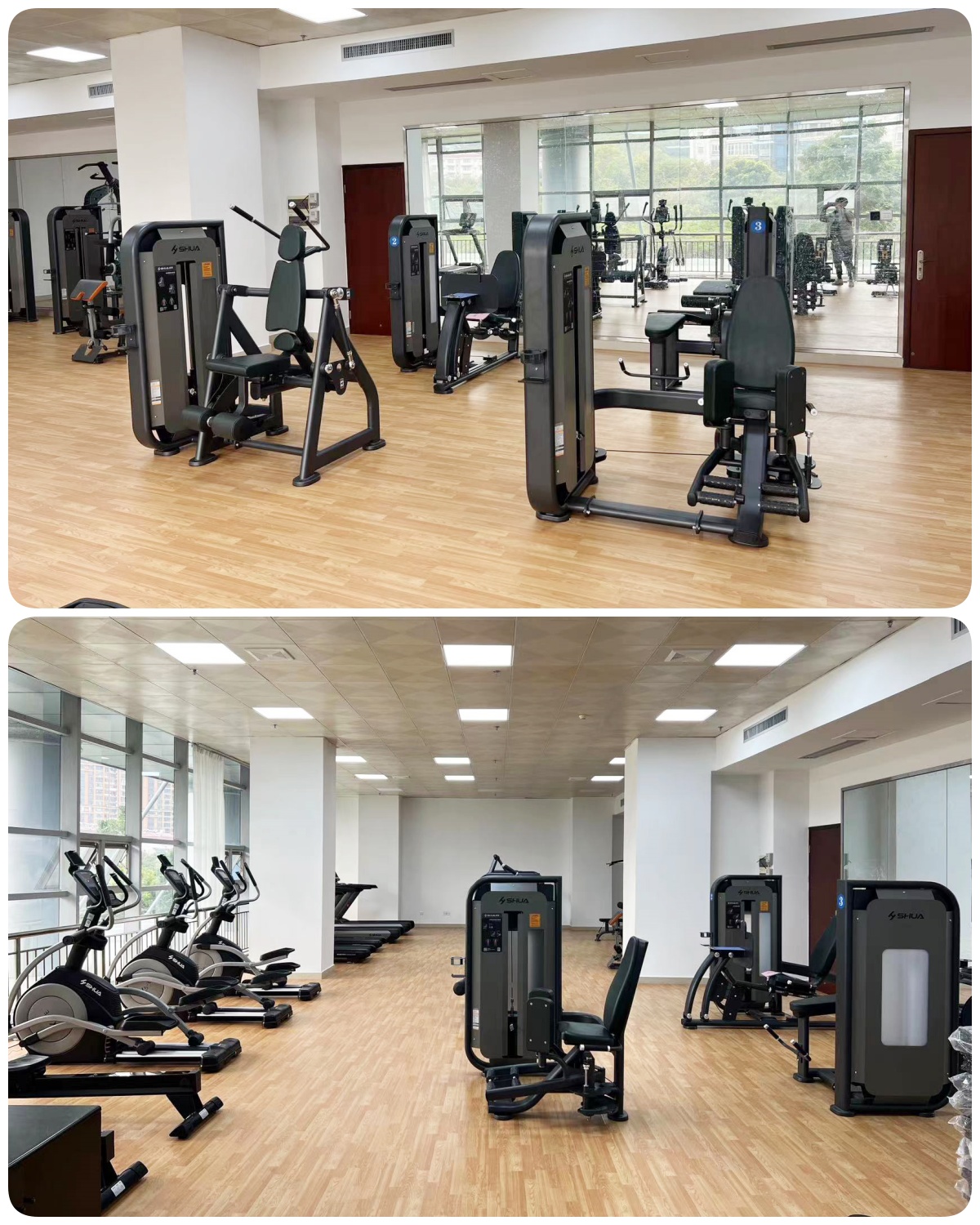 力量器械区域主要配置了坐式胸肌推举训练器、坐式推肩训练器、坐式蹬腿训练器、大腿屈伸训练器、坐式腹肌训练器、大腿内外侧肌训练器、高低拉训练器、单双杠训练器。力量器械训练可以有针对性地锻炼身体的各个部位,包括上肢、下肢、核心肌群等,帮助塑造健美的身材线条。星空xk68系列力量器械,符合亚洲人体工学设计,专业流畅,精细配重调节,人性化座椅调节,适合新手锻炼,减少运动损伤,让力量训练更科学,更有成效。