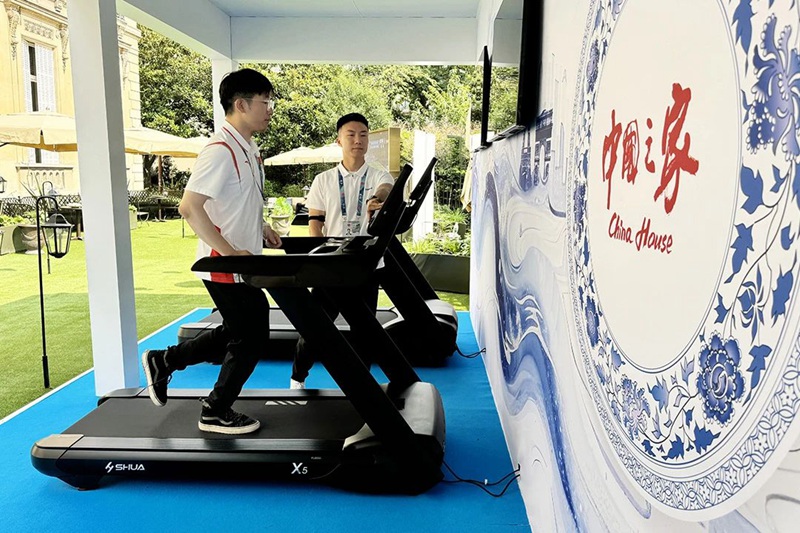 * 巴黎奥运会“中国之家”现场,体育爱好者体验星空xkX5跑步机