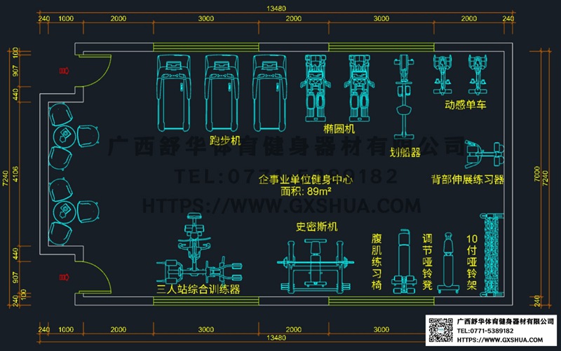 89m²企事业单位健身房:紧凑型空间布局与功能优化设计方案